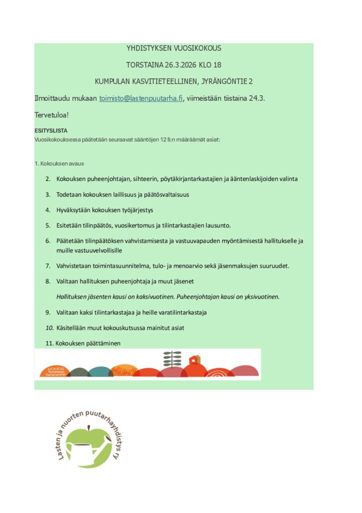 Workshopit pidetään Kumpulan koulukasvitarhalla, Vähänkyröntie 3-6, 00610 Helsinki